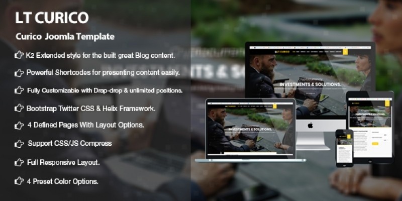 LT Curicois responsive J2Store template which is specifically designed for Cryptocurrency Website or Bitcoin Website Template. However, consulting agencies, marketing firms, and other similar businesses can use these themes to create an authoritative corporate image that exudes confidence and trust. The Cryptocurrency Website Template has a significant feature from J2Store, which helps to make payment more convenient. Besides, 4 customizable colors schemes, with drag and drop tools and color settings are available too, to help you modify the site without any difficulty. Specialy, it provides original 100% responsive consulting Joomla Template with clean and functional code that is easy to work with and modify. The Cryptocurrency Website Template is absolutely customizable, so you will be able to give your project a professional look and attract more new clients on the web.